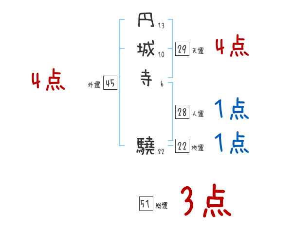 地運![]() | 円城寺驍さんの地運は22画の1つ星!努力することが苦手ないっぽう手先が器用。芸術性にも優れる。 個性を表す基礎的な運勢です。性格形成や対人関係、行動力など家庭環境に影響されます。主に誕生してから20歳くらいまでの若年期の運勢を表します。 |