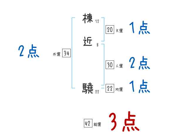 地運![]() | 棟近驍さんの地運は22画の1つ星!努力することが苦手ないっぽう手先が器用。芸術性にも優れる。 個性を表す基礎的な運勢です。性格形成や対人関係、行動力など家庭環境に影響されます。主に誕生してから20歳くらいまでの若年期の運勢を表します。 |