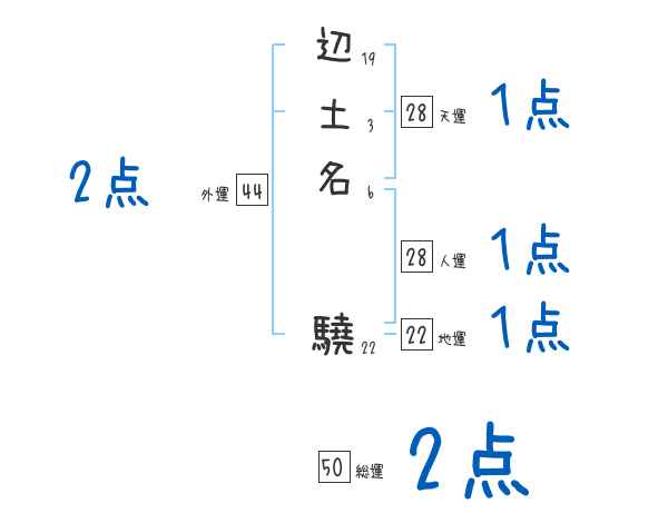 辺土名驍さんの画数の鑑定結果