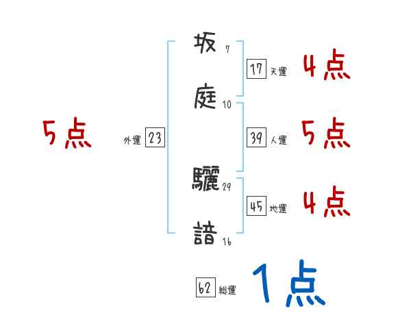 坂庭驪諳さんの画数の鑑定結果