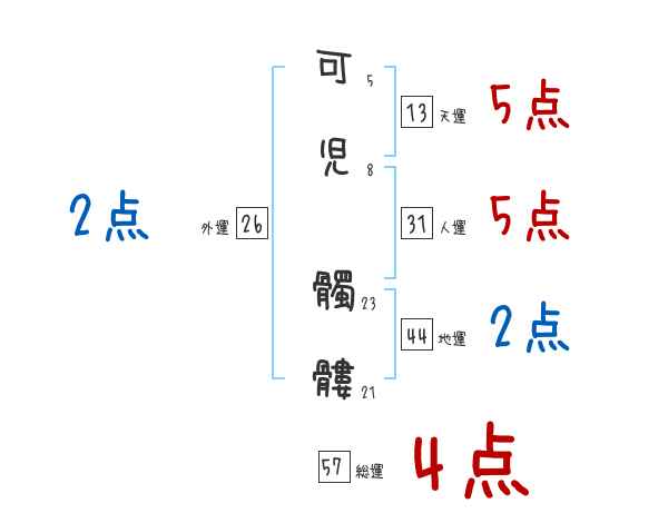 可児髑髏さんの画数の鑑定結果