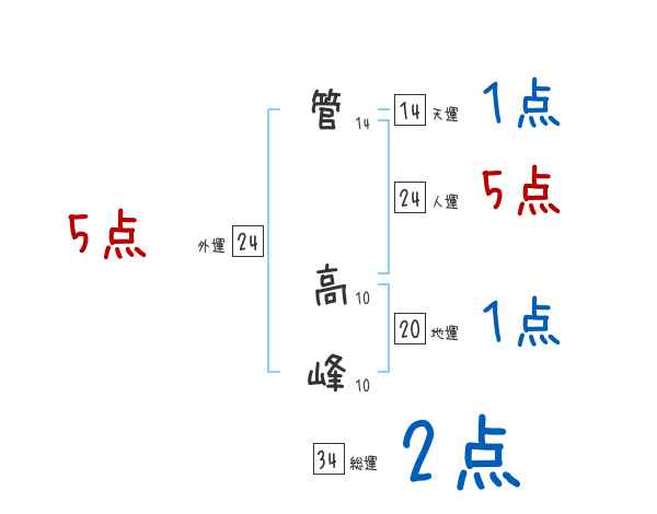 管高峰さんの画数の鑑定結果
