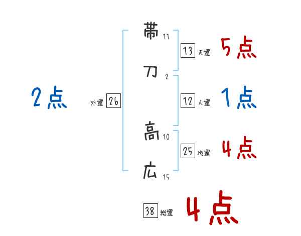 帯刀高広さんの画数の鑑定結果