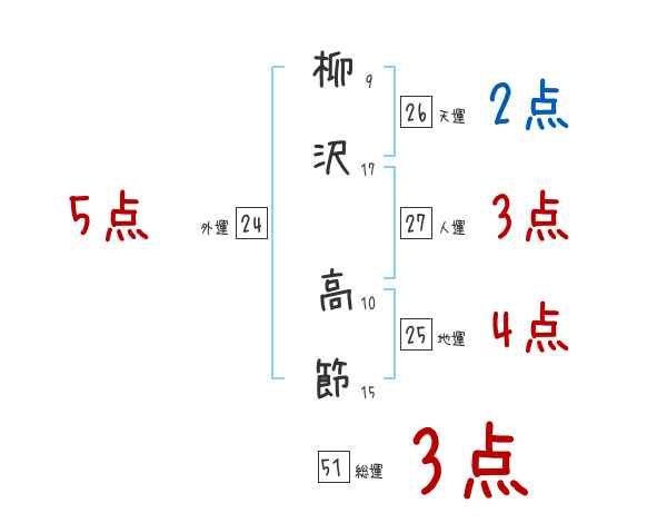 柳沢高節さんの画数の鑑定結果