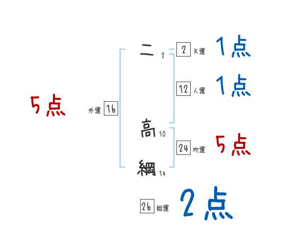 二高綱さんの画数の鑑定結果