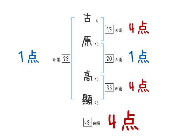 家系が持つ宿命的な運勢を表します。祖先から受け継いだ苗字ですので自分の力が及びません。家柄を象徴します。