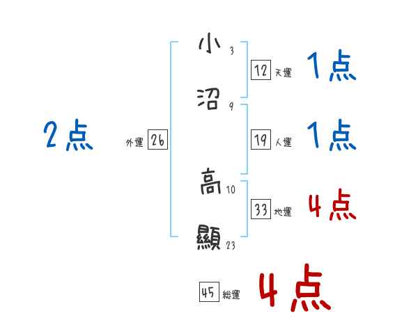小沼高顯さんの画数の鑑定結果