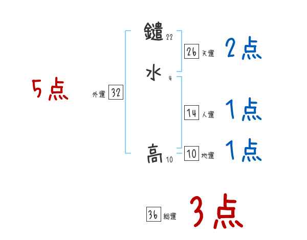 鑓水高さんの画数の鑑定結果