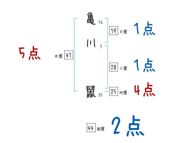 総運![]() | 亀川鬣さんの総運は44画の2つ星!誠実で慎重な性格。物事を考えすぎないように注意しましょう。 あなたの人生を表す1番重要な運勢です。生涯を通じて影響する総合運となり、主に50歳以降の晩年期に影響を及ぼします。 |