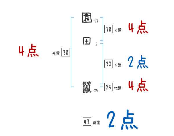 園田鬣さんの画数の鑑定結果