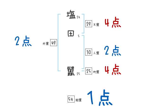 天運![]() | 塩田鬣さんの天運は29画の4つ星!完全主義で才能がある。厳格な心の持ち主。 家系が持つ宿命的な運勢を表します。祖先から受け継いだ苗字ですので自分の力が及びません。家柄を象徴します。 |