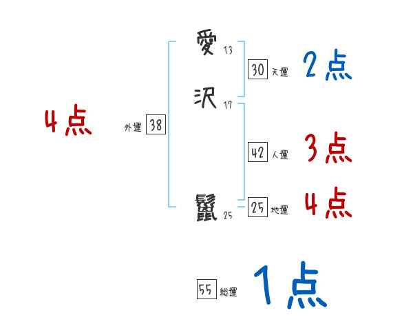 愛沢鬣さんの画数の鑑定結果