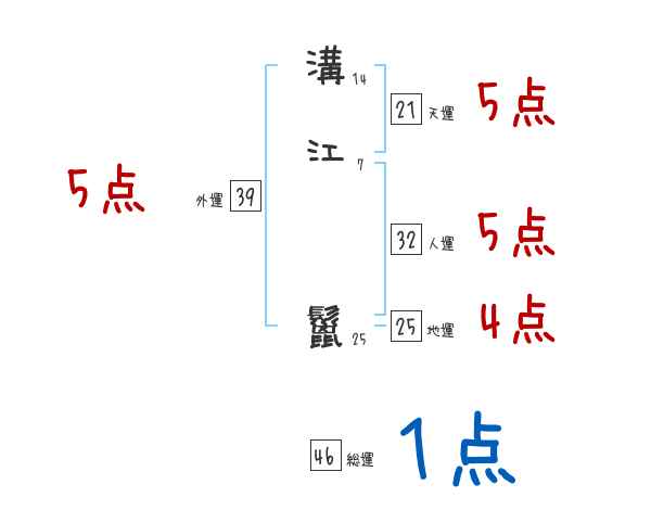 溝江鬣さんの画数の鑑定結果