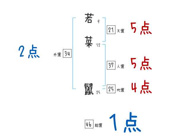 若菜鬣さんの画数の鑑定結果