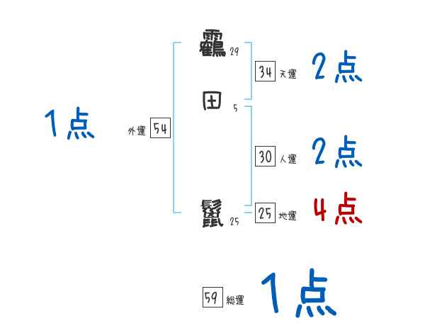 靏田鬣さんの画数の鑑定結果