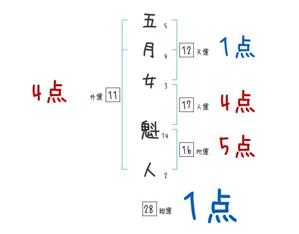五月女魁人さんの画数の鑑定結果
