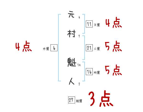 元村魁人さんの画数の鑑定結果