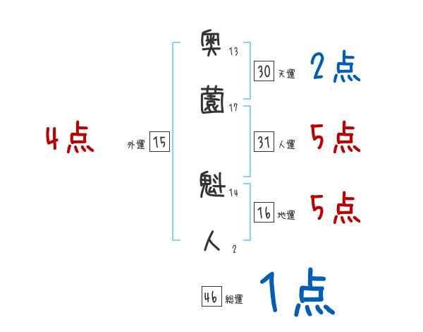 奥薗魁人さんの画数の鑑定結果
