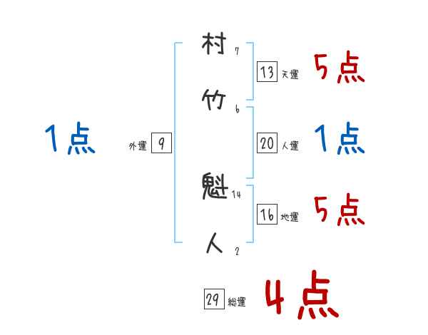 村竹魁人さんの画数の鑑定結果