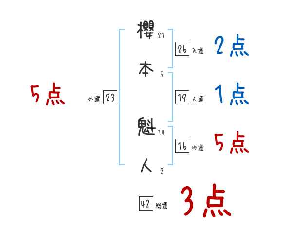 櫻本魁人さんの画数の鑑定結果