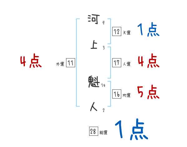 河上魁人さんの画数の鑑定結果