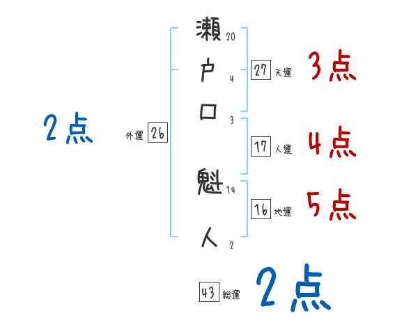 瀬戸口魁人さんの画数の鑑定結果