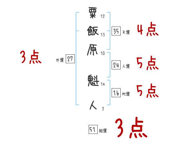 粟飯原魁人さんの画数の鑑定結果