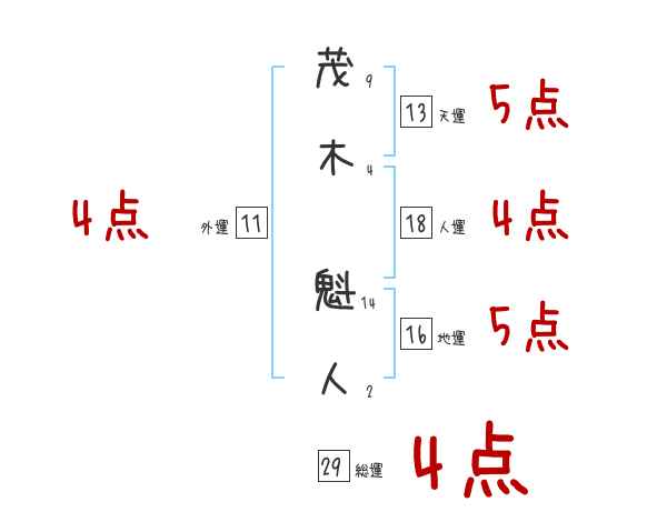 茂木魁人さんの画数の鑑定結果