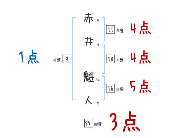 赤井魁人さんの画数の鑑定結果