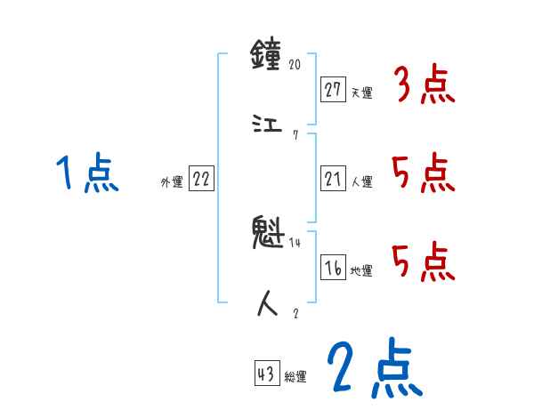 鐘江魁人さんの画数の鑑定結果