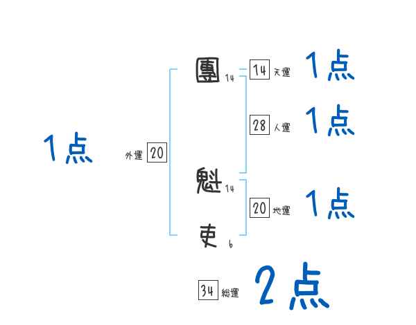 総運![]() | 團魁吏さんの総運は34画の2つ星!独創性に優れるが、自尊心が強く災難に注意しましょう。 あなたの人生を表す1番重要な運勢です。生涯を通じて影響する総合運となり、主に50歳以降の晩年期に影響を及ぼします。 |