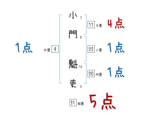 小門魁吏さんの画数の鑑定結果