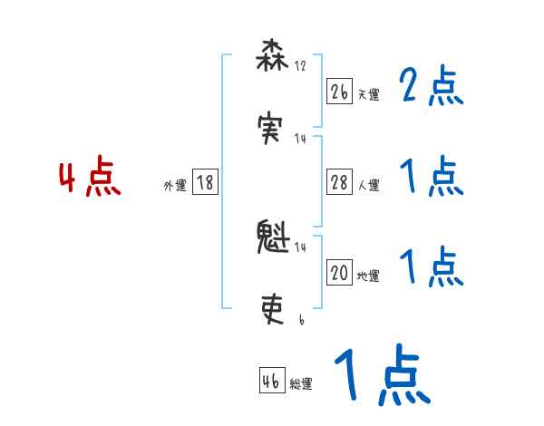 森実魁吏さんの画数の鑑定結果