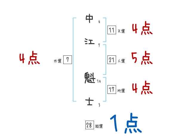 中江魁士さんの画数の鑑定結果