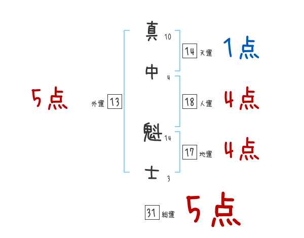 真中魁士さんの画数の鑑定結果