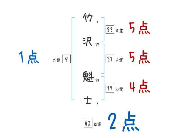 天運![]() | 竹沢魁士さんの天運は23画の5つ星!想像力に優れ活力がある。一代で成功し名誉を手に入れる。 家系が持つ宿命的な運勢を表します。祖先から受け継いだ苗字ですので自分の力が及びません。家柄を象徴します。 |