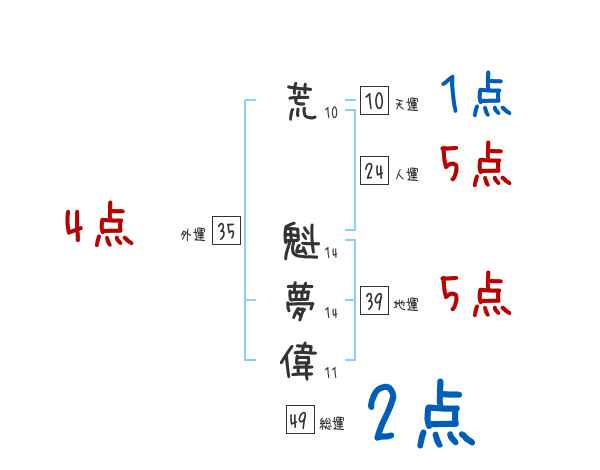 荒魁夢偉さんの画数の鑑定結果