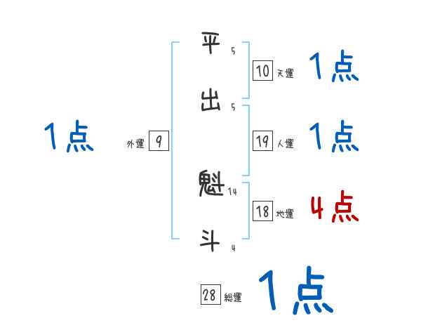 平出魁斗さんの画数の鑑定結果