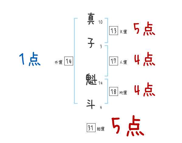 真子魁斗さんの画数の鑑定結果