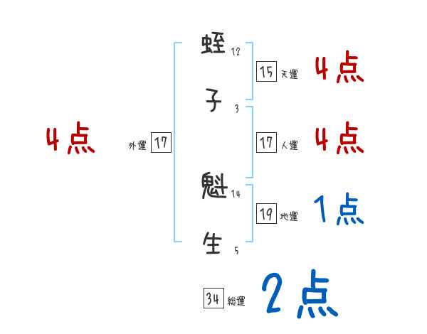 蛭子魁生さんの画数の鑑定結果