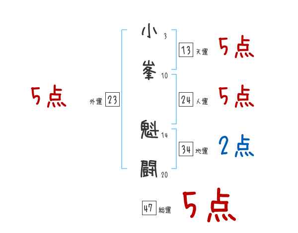 小峯魁闘さんの画数の鑑定結果