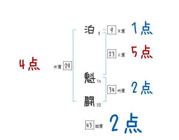 泊魁闘さんの画数の鑑定結果