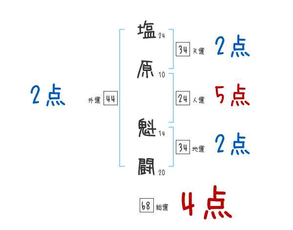 塩原魁闘さんの画数の鑑定結果