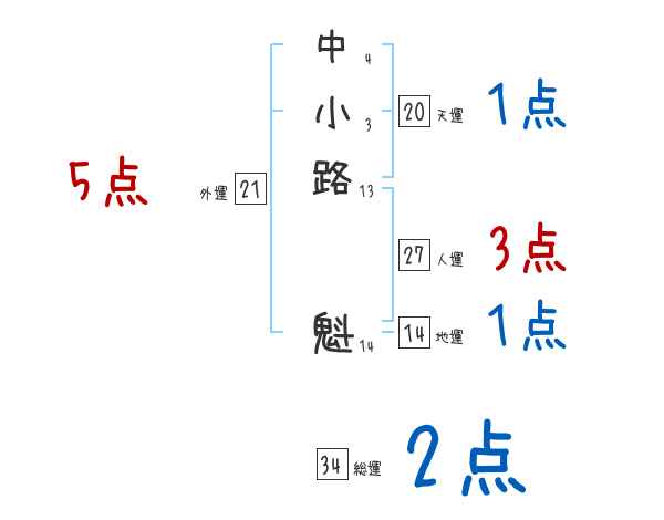 中小路魁さんの画数の鑑定結果