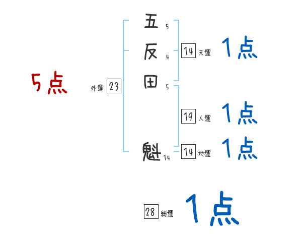 総運![]() | 五反田魁さんの総運は28画の1つ星!家庭環境に注意。スポーツで活躍できる能力があるかも。 あなたの人生を表す1番重要な運勢です。生涯を通じて影響する総合運となり、主に50歳以降の晩年期に影響を及ぼします。 |