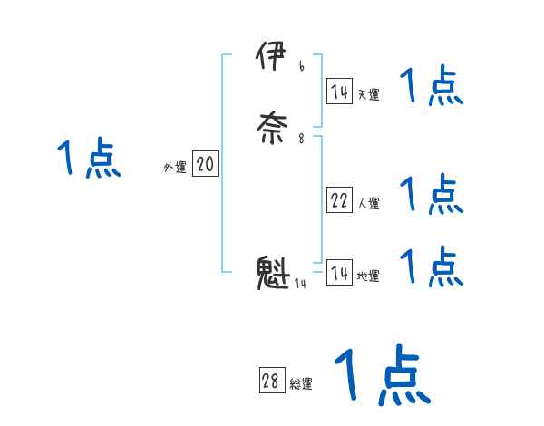 伊奈魁さんの画数の鑑定結果