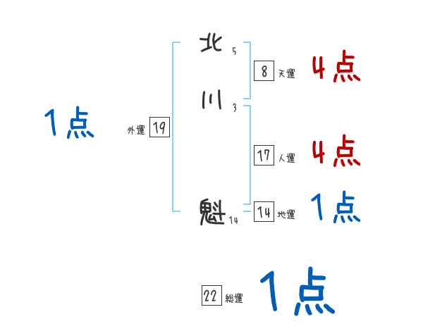 北川魁さんの画数の鑑定結果