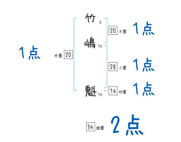 総運![]() | 竹嶋魁さんの総運は34画の2つ星!独創性に優れるが、自尊心が強く災難に注意しましょう。 あなたの人生を表す1番重要な運勢です。生涯を通じて影響する総合運となり、主に50歳以降の晩年期に影響を及ぼします。 |