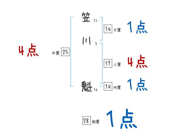 笠川魁さんの画数の鑑定結果