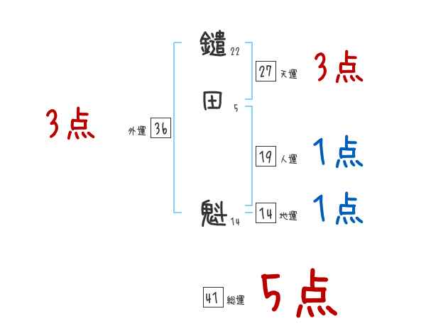 鑓田魁さんの画数の鑑定結果